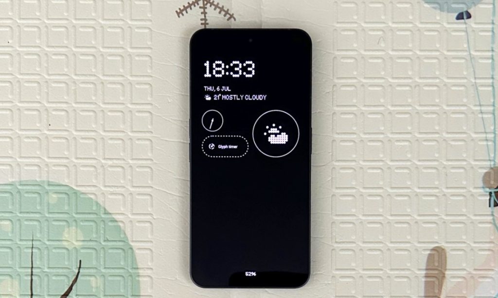 • Glyph Timer: Set the Glyph Timer, lay the Smartphone flat, face down, and slowly empty it with the light bar.